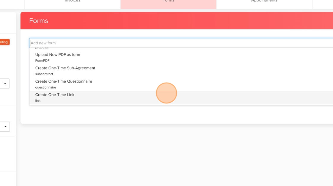 4. Scroll to the bottom of the list and select the item you're adding (Upload New PDF as form, Create One-Time Link, etc.)