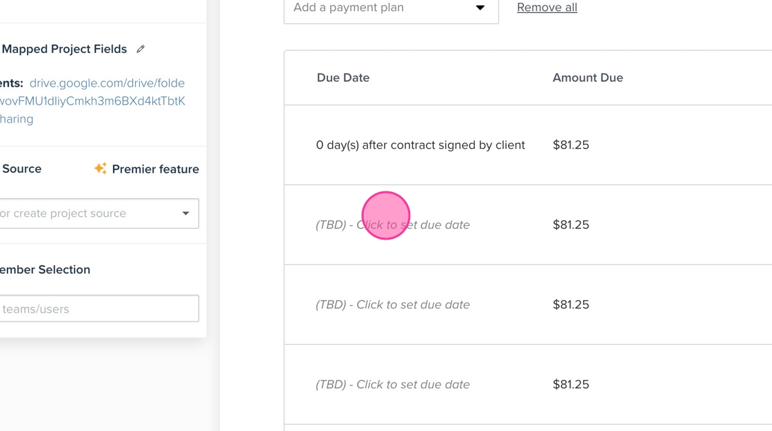 8. You can choose between a relative due date, fixed due date, or TBD. I recommend keeping the "Amount Due" as "divide equally" so that you can easily add and remove installments as needed.