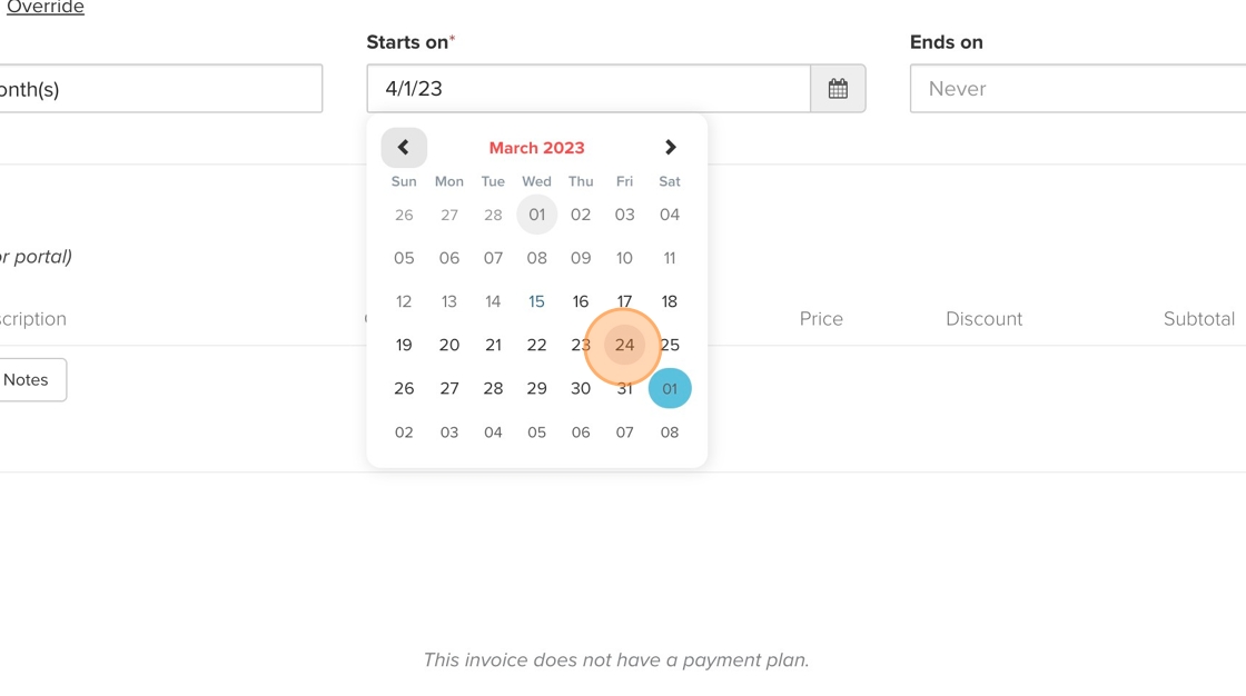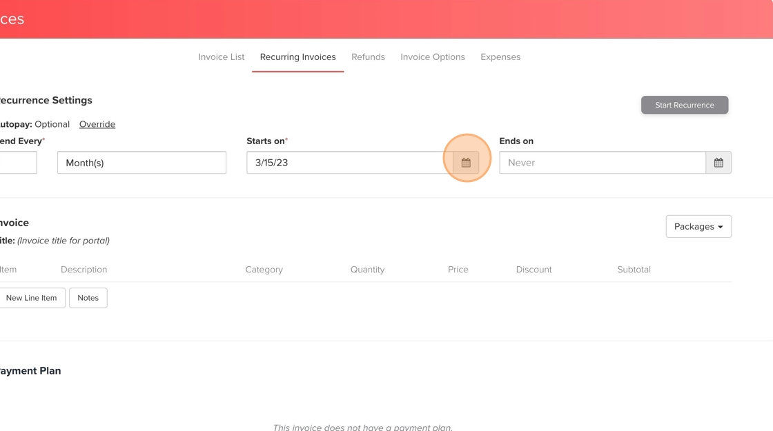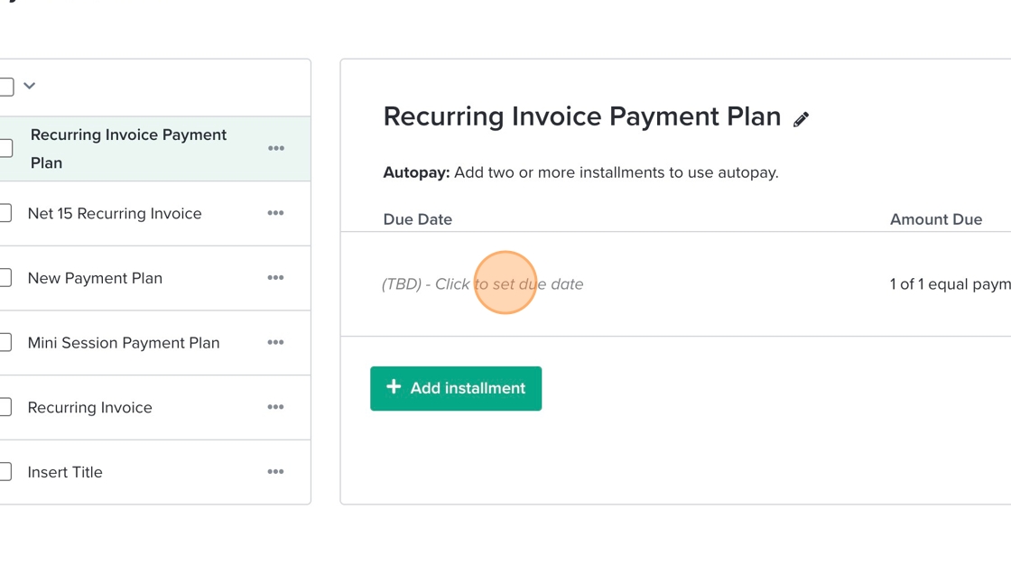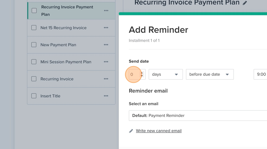 Alert: Alert! This may be wonky in your FIRST month if you're not setting up the recurring invoice the same number of days out as you need your reminders to be set for. If that's the case, you can manually change your payment plan for your first invoice (as shown below). The rest will generate and apply correctly.