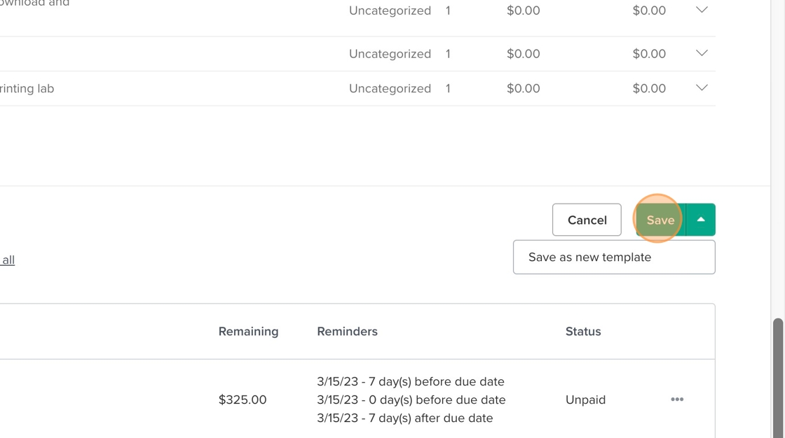 14. Continue adding reminders for all of the checkpoints you want the invoice to have.